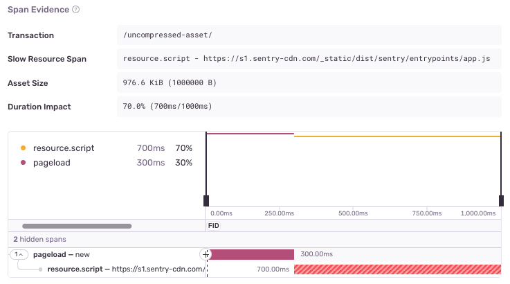 - Slow resource span - The uncompressed slow span, usually containing the asset url